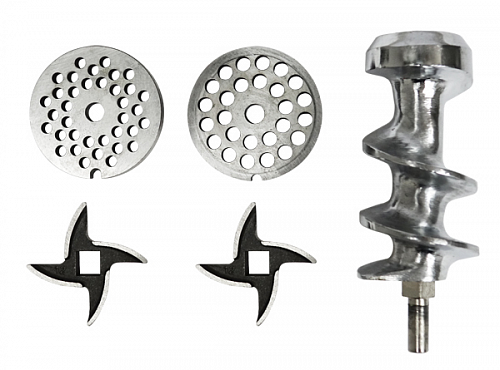 • В комплектацию входят: загрузочный лоток, толкатель, 2 ножа и 2 решетки